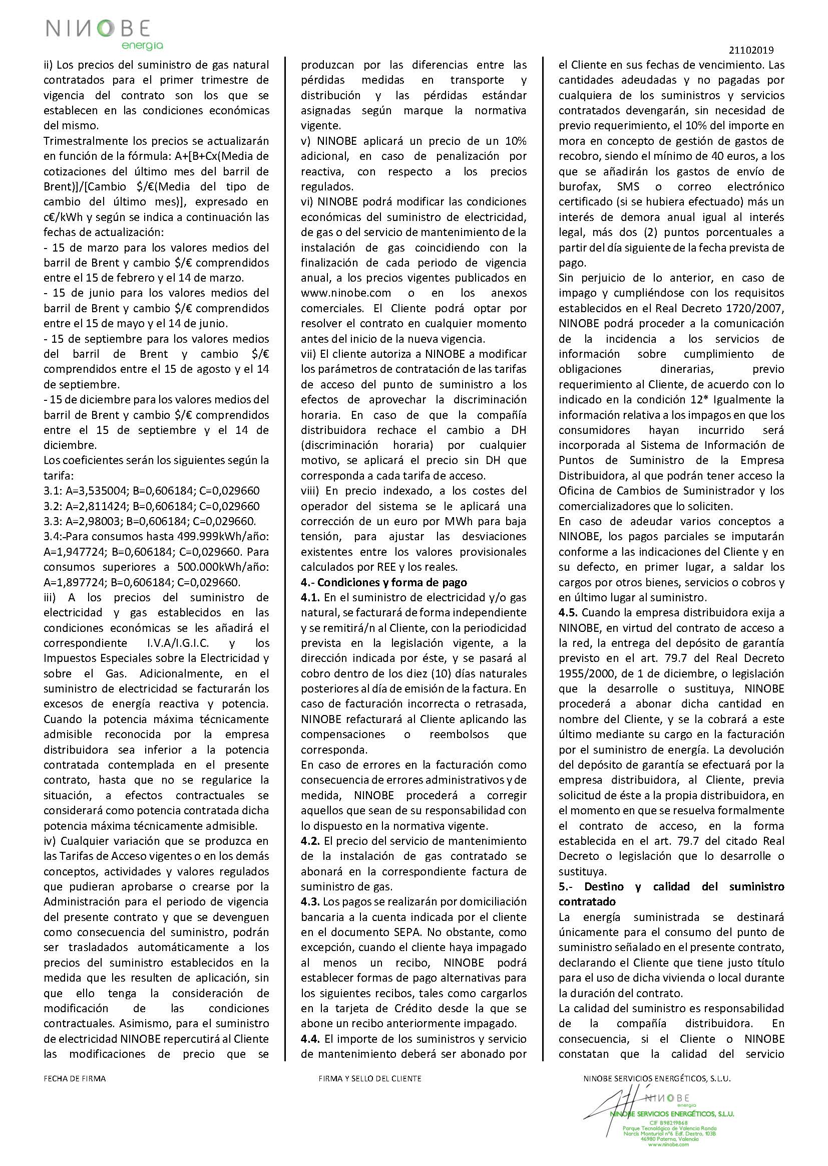 Se debe entregar al cliente una copia del contrato y las condiciones generales de contratación de electricidad y/o gas.