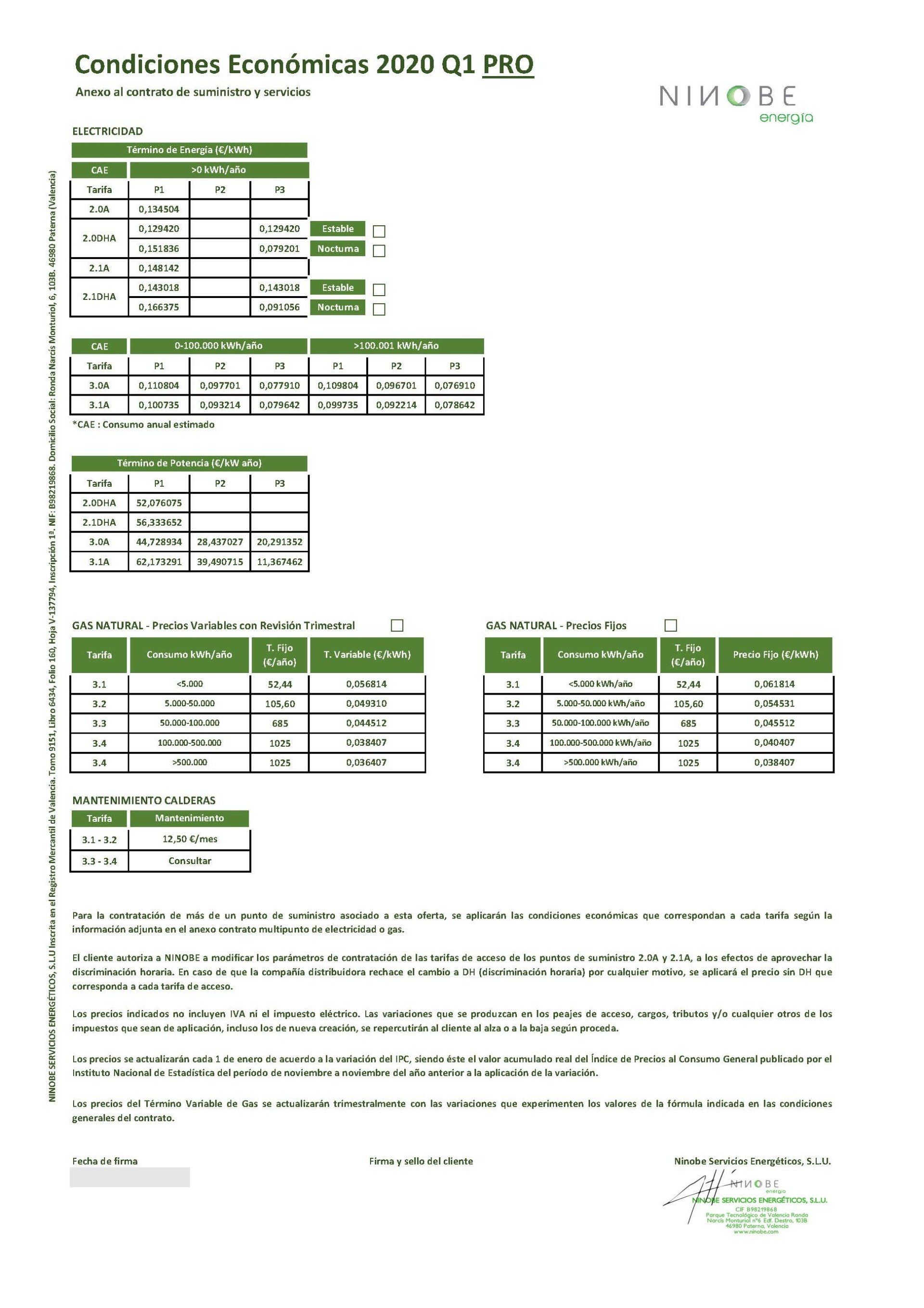 El cliente acuerda un precio fijo del kW durante un periodo de tiempo determinado (normalmente un año).