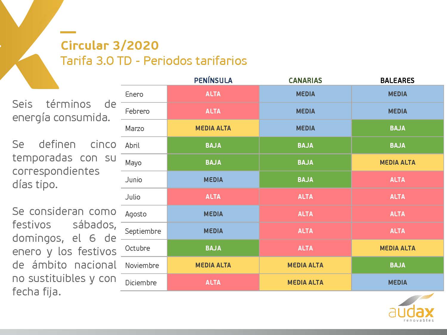In the new 2.0TD rate (usually individuals and businesses) there will be 3 consumption periods: