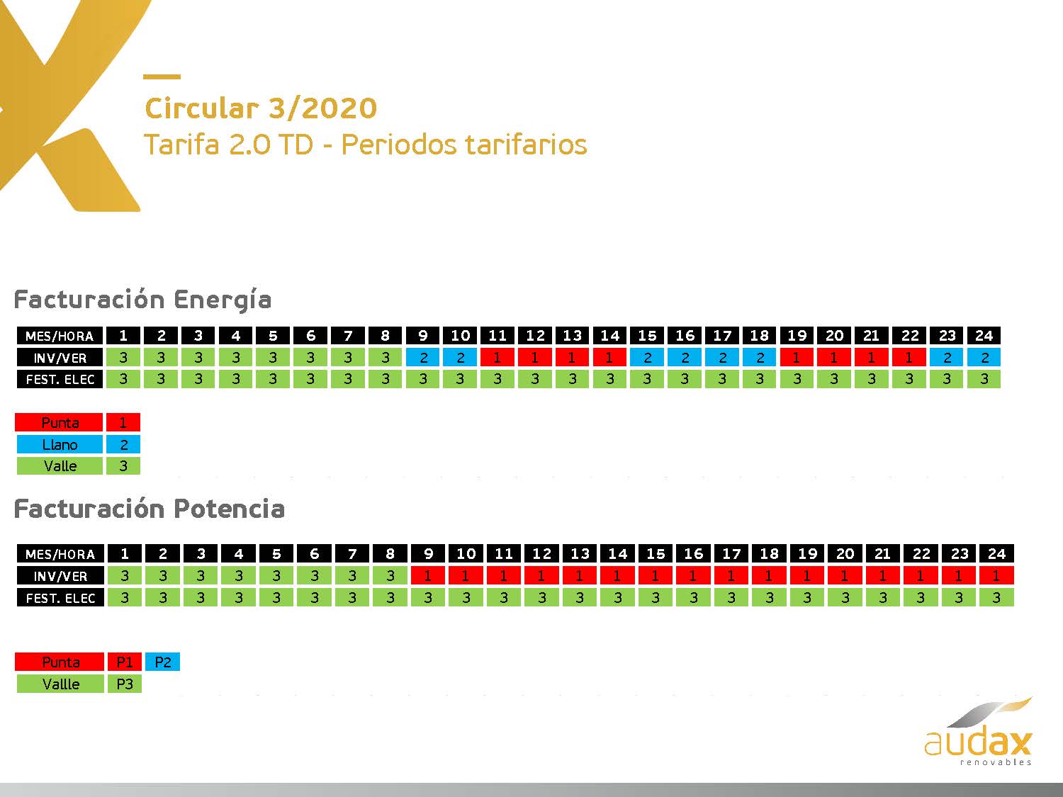 Per i consumatori la cui potenza contrattuale è inferiore a 15 kW (si tratta solitamente di privati e imprese), sono stabiliti tre periodi di consumo, il cui prezzo varierà a seconda dell'ora, del giorno e della zona geografica (lo dettagliamo nel documento allegato).